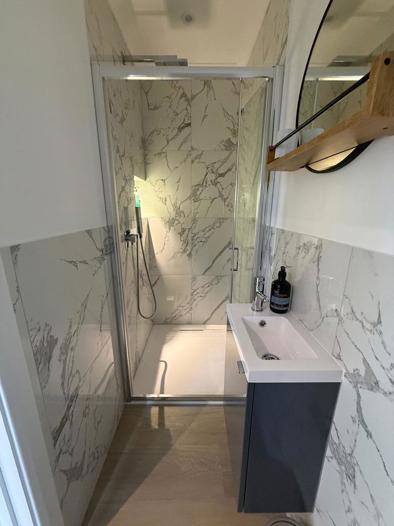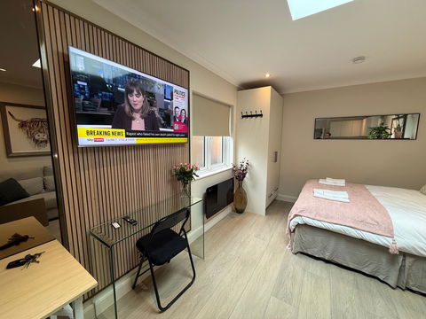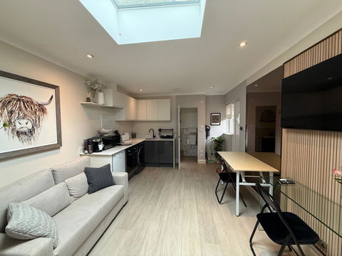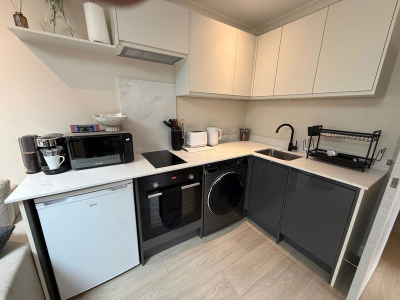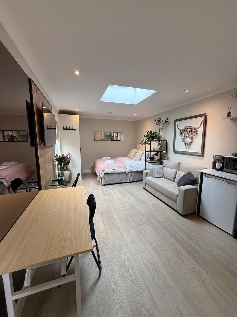 Large stunning studio apartment with a private patio newly renovated to a high standard with a modern fitted kitchen, double bed plus a sofa bed and a sleek shower room. Nestled in Raynes Park, within easy reach of local shops and restaurants and a 2-minute walk to the train station.